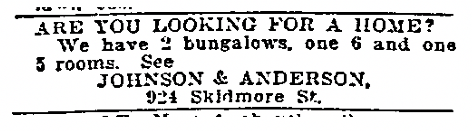Johnson & Anderson first began to appear on the scene in the early 1920s as a homebuilding company. The two principals were both immigrant carpenters who built houses as sole proprietors previously but partnered in 1921 and hired a small crew as the homebuilding market accelerated.