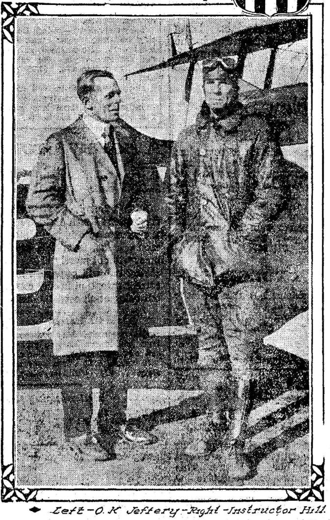 From The Oregonian, October 28 1917. OHB was in receivership when this was taken. The story that accompanied the photo quoted Jeffery at length about his flying adventures and reported that he was visiting “various flying camps in the east” and was organizing a company to manufacture parts for airplanes. Nothing said about the company that just had crash landed taking investors funds along for the ride.