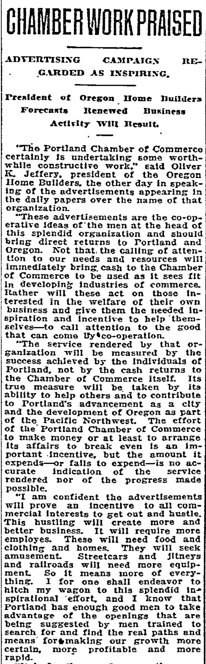 From The Oregonian, January 21, 1921